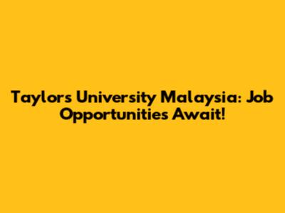 Taylor's University Malaysia: Job Opportunities Await!