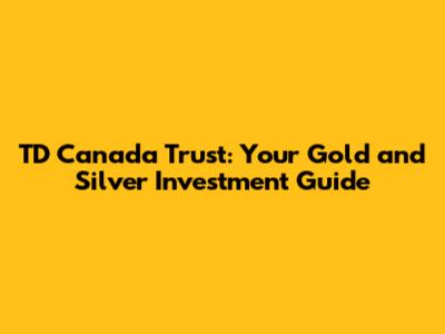 TD Canada Trust: Your Gold And Silver Investment Guide