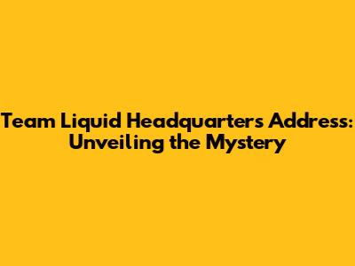 Okay, let's get down to brass tacks. Pinpointing the exact physical address of Team Liquid's main headquarters can be a bit tricky. Here's why: Like many modern organizations, especially those in the tech and esports space, they might not publicly advertise their precise street address for security and operational reasons. However, we can provide you with some helpful information to get you closer.