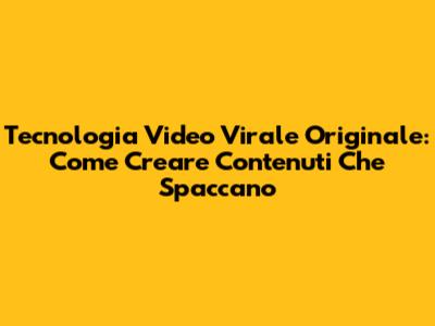 Tecnologia Video Virale: Crea Contenuti Originali