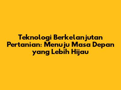 Teknologi Berkelanjutan: Masa Depan Pertanian?