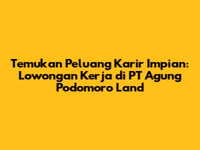 Temukan Peluang Karir Impian: Lowongan Kerja Di PT Agung Podomoro Land