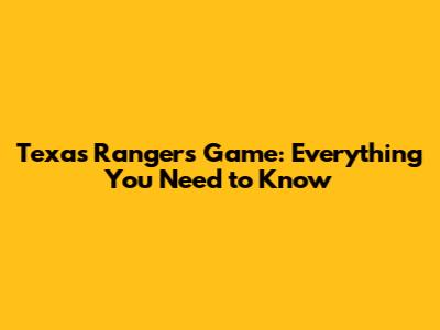Texas Rangers Game: Everything You Need To Know