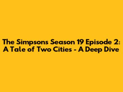 Hey everyone! Let's dive deep into The Simpsons Season 19, Episode 2, titled "A Tale of Two Cities." This episode is a wild ride, and we're going to break down everything from the plot to the jokes, and even its place in the show's massive legacy. Get ready, because it's going to be a fun journey through Springfield! This episode, just like many others, provides us with a healthy dose of satire, humor, and memorable moments. We will cover the main highlights of the episode, going through the plot, and then analyzing the comedy, the characters, and some of the reception and lasting impact of this particular Simpsons episode.