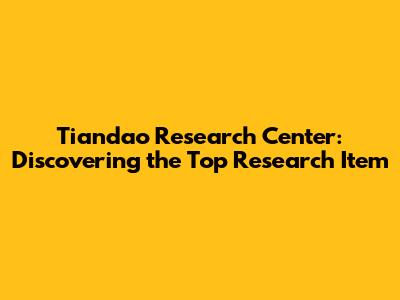 Tiandao Research Center: Discovering The Top Research Item