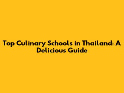 Top Culinary Schools In Thailand: A Delicious Guide