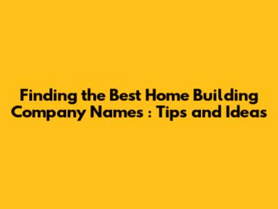 Creative Ideas for Home Building Company Names