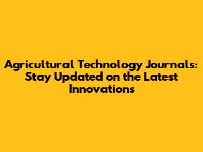 Top Agricultural Technology Journals to Follow