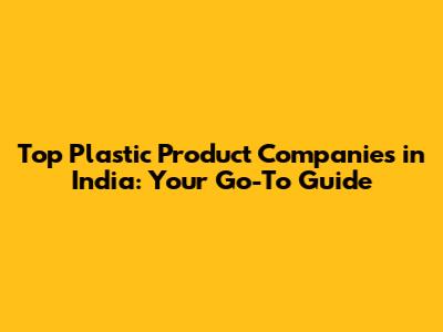 Top Plastic Product Companies In India: Your Go-To Guide