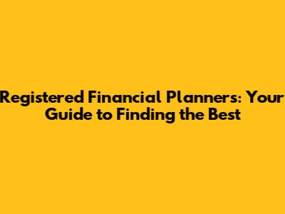 How to Find the Best Registered Financial Planner