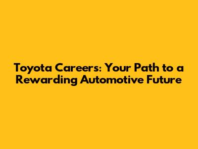 Toyota Careers: Your Path To A Rewarding Automotive Future