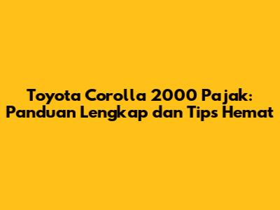 Toyota Corolla 2000 Pajak: Panduan Lengkap Dan Tips Hemat