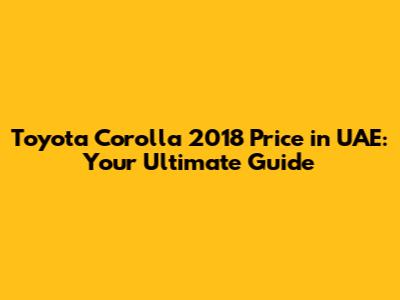 Toyota Corolla 2018 Price In UAE: Your Ultimate Guide