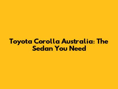 Toyota Corolla Australia: The Sedan You Need