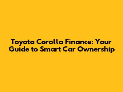 Toyota Corolla Finance: Your Guide To Smart Car Ownership
