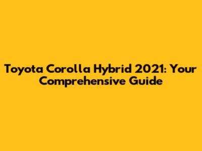 Toyota Corolla Hybrid 2021: Your Comprehensive Guide