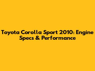 Toyota Corolla Sport 2010: Engine Specs & Performance
