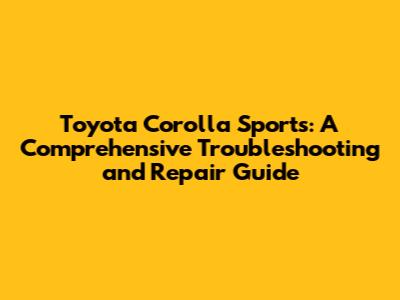 Toyota Corolla Sports: Troubleshooting & Repair Guide