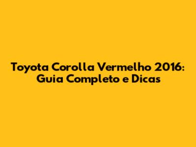 Toyota Corolla Vermelho 2016: Guia Completo E Dicas