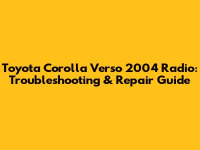 Toyota Corolla Verso 2004 Radio: Troubleshooting & Repair
