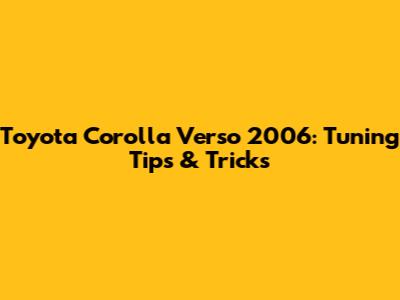 Toyota Corolla Verso 2006: Tuning Tips & Tricks