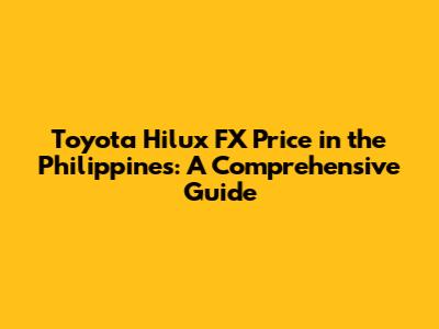 Toyota Hilux FX Price In The Philippines: A Comprehensive Guide