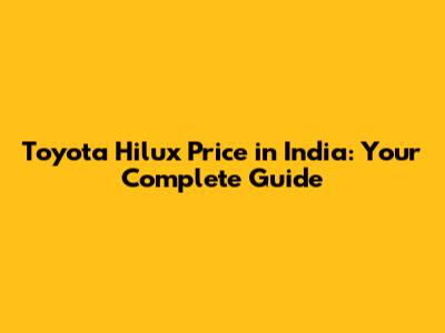 Toyota Hilux Price In India: Your Complete Guide