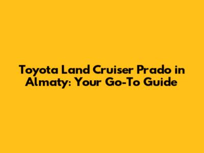 Toyota Land Cruiser Prado In Almaty: Your Go-To Guide