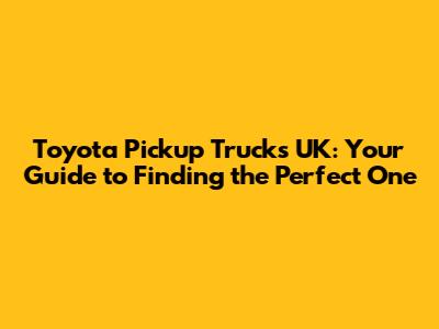 Toyota Pickup Trucks UK: Your Guide To Finding The Perfect One