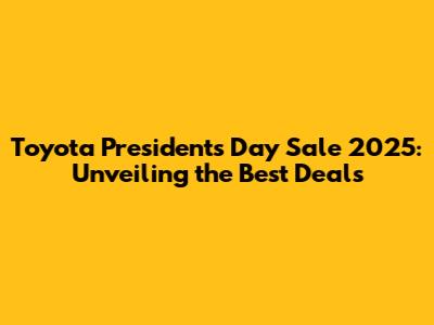 Hey everyone! Get ready, because the Toyota Presidents Day Sale 2025 is shaping up to be epic! If you're in the market for a new car, truck, or SUV, or even if you're just starting to think about it, you won't want to miss out on the incredible deals and offers that Toyota is expected to roll out. Presidents Day is a fantastic time to snag a new ride, and we're here to give you the inside scoop on what to expect, how to prepare, and how to make the most of this year's sale. So, buckle up, because we're diving deep into everything you need to know about the Toyota Presidents Day Sale 2025! This article is your ultimate guide, packed with insights, tips, and predictions to help you navigate the sale like a pro and drive away happy. Are you ready to save some serious cash? Let's get started!