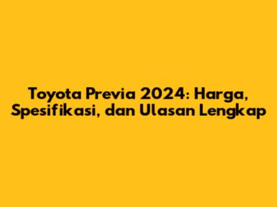 Toyota Previa 2024: Harga, Spesifikasi, Dan Ulasan Lengkap