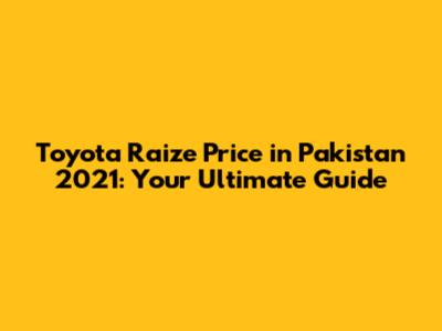 Toyota Raize Price In Pakistan 2021: A Comprehensive Guide