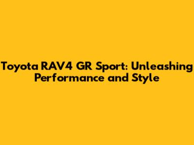 Toyota RAV4 GR Sport: Unleashing Performance And Style