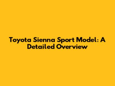 Toyota Sienna Sport Model: A Detailed Overview