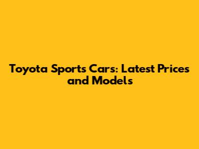 Toyota Sports Cars: Latest Prices And Models