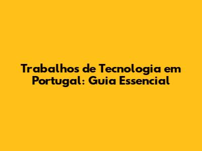 Trabalhos De Tecnologia Em Portugal: Guia Essencial