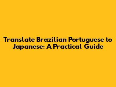 Translate Brazilian Portuguese To Japanese: A Practical Guide