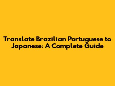 Translate Brazilian Portuguese To Japanese: A Complete Guide