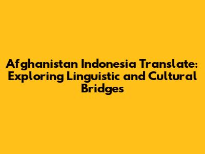 Translate: Exploring Afghanistan And Indonesia Connections