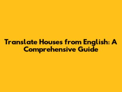 Translate Houses From English: A Comprehensive Guide