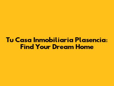 Tu Casa Inmobiliaria Plasencia: Find Your Dream Home
