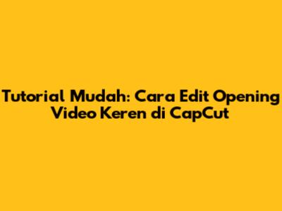 Tutorial Mudah: Cara Edit Opening Video Keren Di CapCut