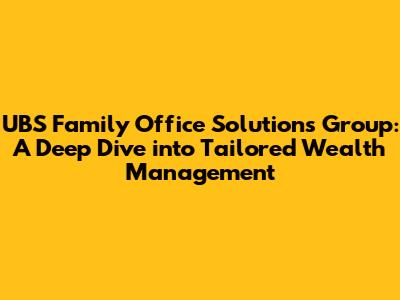 Hey guys! Let's talk about UBS Family Office Solutions Group. If you're someone with substantial wealth, you've probably heard this name thrown around. But what exactly is it, and why is it so important for high-net-worth families? In this article, we'll dive deep into what the UBS Family Office Solutions Group offers, exploring its services, benefits, and how it can help you manage your wealth effectively. We will start with a comprehensive overview to understand the fundamental aspects of family offices and how UBS structures its services to meet the complex needs of wealthy families, covering everything you need to know about navigating the world of wealth management.