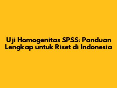 Uji Homogenitas SPSS: Panduan Lengkap Untuk Riset Di Indonesia