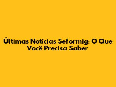 # Últimas Notícias Seformig: O Que Você Precisa Saber