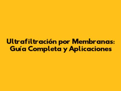 Ultrafiltración Por Membranas: Guía Completa Y Aplicaciones