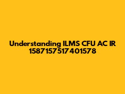 \nLet's dive deep into deciphering what "ILMS CFU AC IR 1587157517401578" actually means. It looks like a specific identifier, possibly related to a system, process, or piece of equipment. To really understand it, we need to break it down and explore potential contexts where such an identifier might be used. This could range from IT systems and manufacturing processes to regulatory compliance and asset management. So, buckle up as we explore the possibilities and try to make sense of this alphanumeric string!