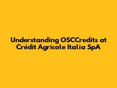 Understanding OSCCredits At Crédit Agricole Italia SpA