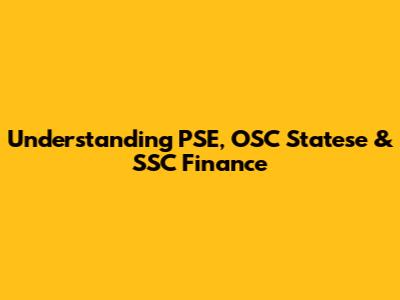 Hey guys! Let's dive into the world of PSE, OSC Statese, and SSC Finance. It might sound like alphabet soup, but trust me, it's all pretty interesting once you get the hang of it. We'll break down each term, see how they connect, and why they matter. So, buckle up, and let's get started!