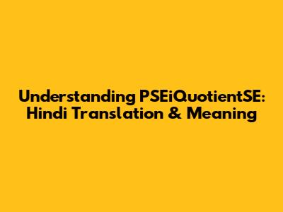 Understanding PSEiQuotientSE: Hindi Translation & Meaning